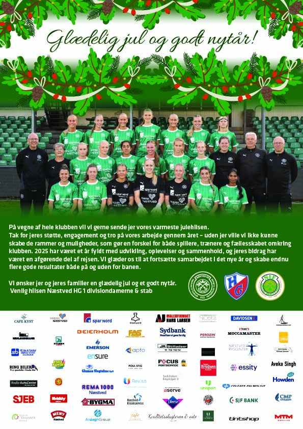 Næstved HG Kvindeelite vil på hele klubbens vegne ønske alle en glædelig jul og et godt nytår.